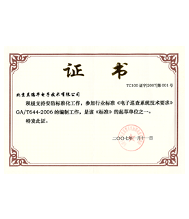 - 蘭德華公司被列為《電子巡查國家行業(yè)標(biāo)準(zhǔn)》起草單位,公司主創(chuàng)人員王兵、張韶虞作為專家起草人之一